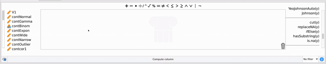 I was looking to add a computed column in my data in JASP. In simple terms the computation is look at this other column and depending on what is in the other column produce a "friendly name" for the region for that record. The GUI for computed column definition looks to mimic the Filter options. That is a good thing as I might need some of the same features in Filter and Computed column.