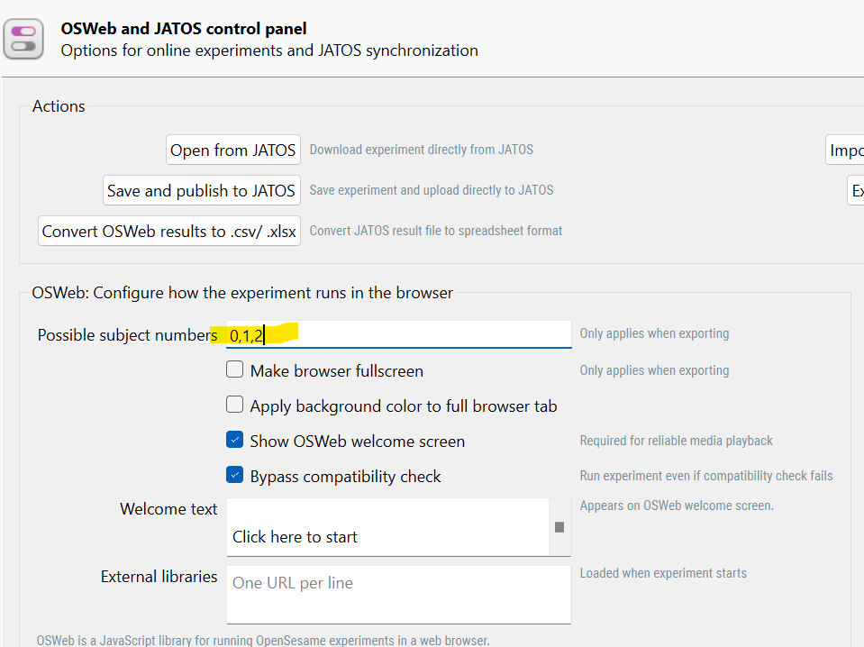 If you're gonna run your OSWeb experiment on a JATOS server, please note that you cannot make sure that the same number of participants will be allocated to each of the three orders. Instead, the task will allocate random a subject number base on the OSWeb settings of your experiment: