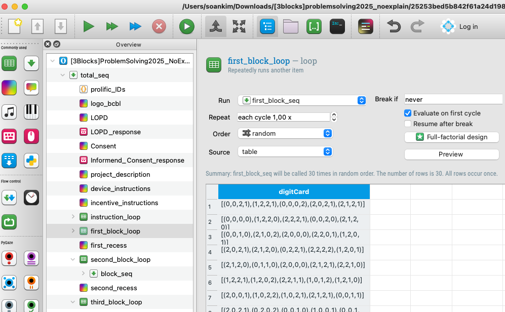 My experiment has three blocks of stimuli. Since there are specific conditions across the three blocks, I physically divided them for my convenience, as in the screenshot.