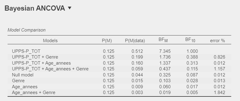 I then computed a Bayesian ANCOVA, using a similar model structure: