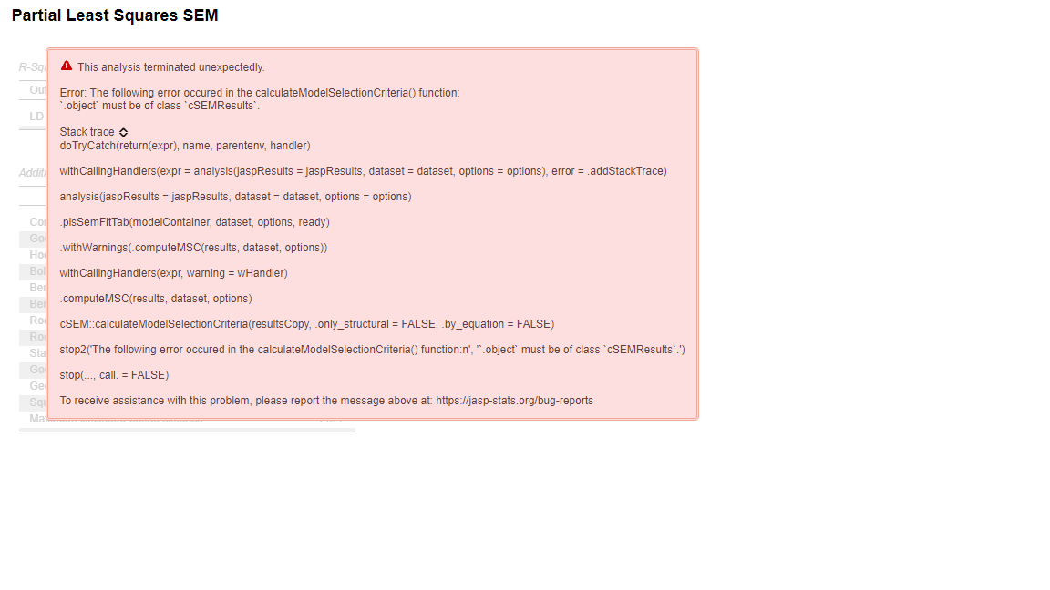 PLSSEM error message