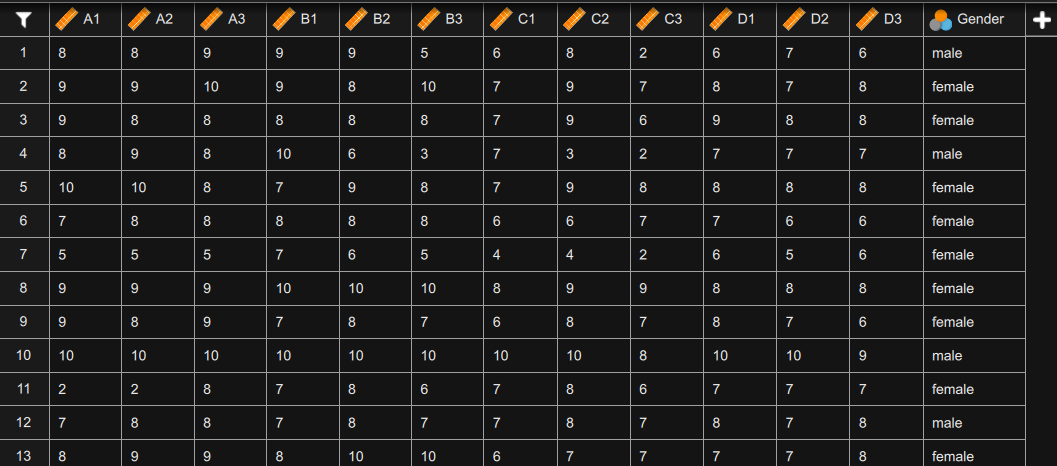 LD =~ D1 + D2 + D3", optionKey = "value", prefixedColumns = list(data. = list()), types = list("scale", "scale", "scale", "scale", "scale", "scale", "scale", "scale", "scale", "scale", "scale", "scale"), value = list("A1", "A2", "A3", "B1", "B2", "B3", "C1", "C2", "C3", "D1", "D2", "D3")))),